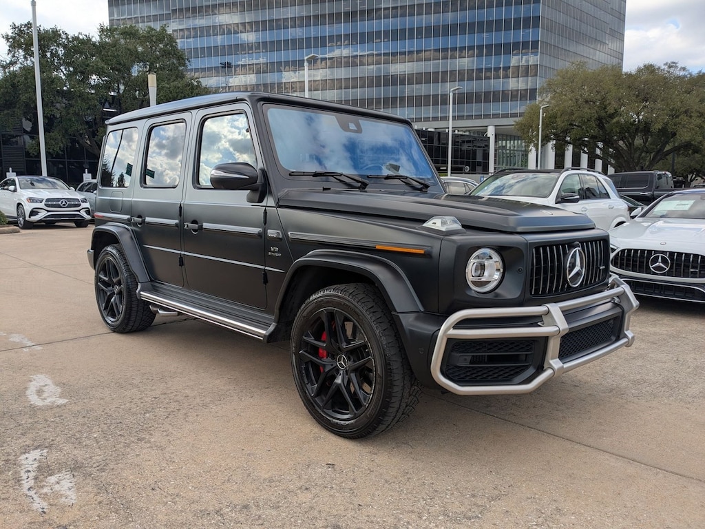 Mercedes-Benz of Houston Greenway is a premier luxury pre-owned super center! We are the number 1 volume luxury store under the AutoNation umbrella of dealerships; as well as the number one CPO dealer for Mercedes-Benz in the Southern Region. Come let us show you why our service and value will exceed all your expectations. Mercedes-Benz of Houston Greenway is proud to offer this particular vehicle to you and we thank you for your consideration. This vehicle has gone through our stringent safety inspection along with quality inspections. Come stop by our showroom at 3900 Southwest Fwy between Weslayan and Buffalo Speedway and experience a whole new luxury experience! We have the largest selection of Certified Pre-owned Mercedes-Benz product here at our premier Houston showroom. This SUV is a superb example of what a tough, work focused vehicle should be. Exceptional towing, acceleration and torque will help you get the job done. Pull up in the vehicle and the valet will want to parked on the front row. This Mercedes-Benz G-Class AMG G 63 is the vehicle others dream to own. Don't miss your chance to make it your new ride. This AWD-equipped vehicle will handle beautifully on any terrain and in any weather condition your may find yourself in. The benefits of driving an all wheel drive vehicle, such as this Mercedes-Benz G-Class AMG G 63, include superior acceleration, improved steering, and increased traction and stability. This 2023 Mercedes-Benz G-Class has such low mileage it has been parked more than driven.